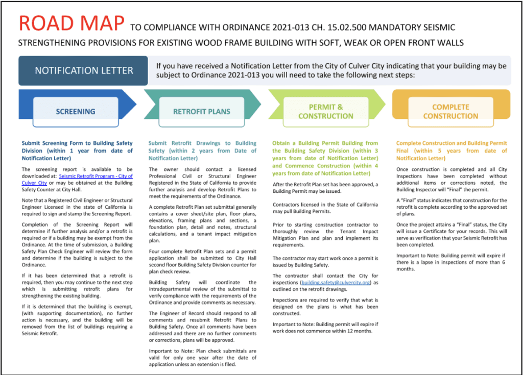 It means your building was officially identified under Culver City Ordinance 2021-013 as a wood-frame structure with Soft, Weak, or Open-Front (SWOF) wall lines.